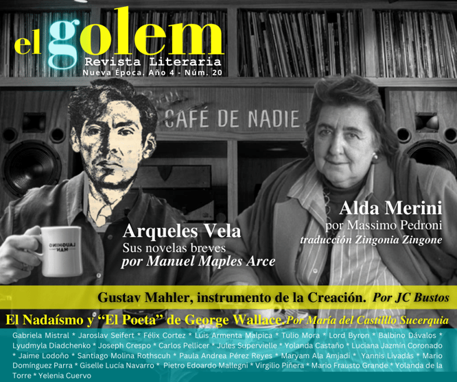 ENSAYO: Alda Merini. Por Massimo Pedroni (Traducción de Zingonia Zingone) * Sus novelas breves (Arqueles Vela) Por Manuel Maples Arce * El Nadaísmo y “El Poeta” de George Wallace. Por María del Castillo Sucerquia * Gustav Mahler, instrumento de la Creación. Por Rodríguez Bustos JC * POESÍA: Canto a la Luna y otros poemas de Alda Merini (Traducción de Zingonia Zingone) * Comentarios a poemas de Rabindranath Tagore. Por Gabriela Mistral * Canción de las niñas. Jaroslav Seifert (Traducción de Félix Cortez) * [Contra] Dicción. Luis Armenta Malpica * Sicofonía de duendes y otros poemas. Tulio Mora * Las islas de Grecia. Lord Byron (Traducción de Balbino Dávalos) * Cinco poemas de Lyudmyla Diadchenko (Traducción de Joseph Crespo) * Homenaje a Arqueles Vela. Por Carlos Pellicer * Poemas de Jules Supervielle * Poemas de Yolanda Castaño * Poemas de Luciana Jazmín Coronado * Poemas de Jaime Lodoño * Fuga. Santiago Molina Rothschuh * Cuando escribo sobre el muro. Paula Andrea Pérez Reyes * Poemas de Maryam Ala Amjadi * Tres Poemas de Yannis Livadás (Traducción de Mario Domínguez Parra) * Poemas de Giselle Lucía Navarro * Poemas de Pietro Edoardo Mallegni. (Traducción de María del Castillo Sucerquia) * NARRATIVA: El otro yo. Por Virgilio Piñera * El viaje redondo. Por Arqueles Vela * RESEÑA: carta abierta para [contra] decir junto a luis armenta malpica. Por Mario Frausto Grande * Nuri: la alquimista de sueños. Por Yelenia Cuervo