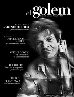 Editorial. Por Hugo De Mendoza. ● Talento y talente de Vicente Huidobro. Por Eduardo Llanos Melussa. ● La patria es la esperanza: Jorge Enrique Adoum. Por Xavier Oquendo Troncoso. ● 5 microrrelatos. Por Luis Antonio de Villena. ● !César Vallejo (no) ha muerto todavía! Por Yván Silén. ● Mis comienzos... y lo que ahora siento. Por Gregory Corso. (Traducción de José Vicente Anaya) ● El genio senil. Por Gregory Corso. ● Puerto Trakl (fragmentos). Por Jaime Huenún. ● La compañera. Por Efraín Barquero ● Hölderlin: Poeta de lo sagrado. Por Francisco Véjar. ● Resumen de la infancia. Por Jorge Enrique Adoum. ● Borges, el fantasma. Por Hernán Lavín Cerda. ● día 11, día 25. Por Cecilia Podestá.