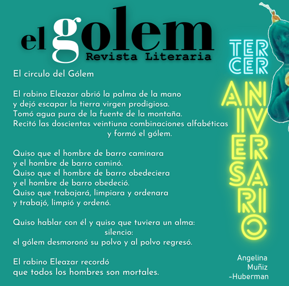 Poema proporcionado por Angelina Muñiz Huberman a El Golem Revista Literaira en celebración de su tercer aniversario.