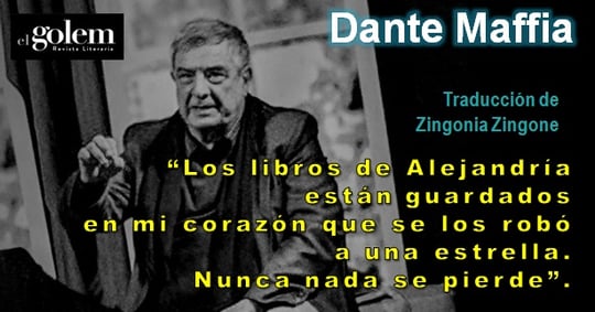 Dante Maffia (17 de enero de 1946) es un poeta, novelista y ensayista Italiano. Nació en Calabria y vive en Roma. Ha escrito obras en italiano y en la lengua vernácula de Calabria traducidas a numerosos idiomas. Hizo su debut en 1974 con la publicación de la colección de versos, Il Leone non manggia L''Erba, con un prefacio de Aldo Palazzeschi. Sus pruebas poéticas posteriores le llevaron a la estima de grandes nombres, como Mario Luzi, Giorgio Caproni, Giacinto Spagnoletti, Natalia Ginzburg y Darío Bellezza (su amigo cercano). Durante mucho tiempo se dedicó a la investigación y la enseñanza en la Cátedra de literatura italiana del Prof. Luigi Reina, en la Universidad de Salerno. Fundó revistas literarias tan prestigiosas como "Il Policordo" , y dirigió "Polimnia" . Como crítico literario también colaboró con el periódico "Paese será" . Su obra más importante es la novela de Tommaso Campanella, 1996 Premio Stresa 1997, su última novela se titula El poeta y el carroñero, publicado por Mursia y prefacio de Walter Veltroni. Desde 2013 es presidente del Premio Vittoriano Esposito Di Celano (Aq). También preside otros concursos literarios, como el premio dedicado a Giosuè Carducci y titulado Dal Tirreno allo Ionio. En 2004 Carlo Azeglio Ciampi le otorgó la medalla de oro a la cultura de la presidencia de la República. El escritor fue nominado para el Premio Nobel de la región de Calabria.