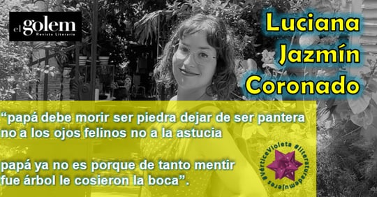 Luciana Jazmín Coronado nació en Buenos Aires en 1991. Es Licenciada en Letras por la UBA. Publicó dos poemarios: La insolación (Viajero Insomne, 2014) y Catacumbas (Valparaíso, 2016), ganador del I Premio Hispanoamericano de Poesía de San Salvador. Obtuvo la beca de creación artística Fundación Antonio Gala para Jóvenes Creadores (Córdoba, España, 2017) y la Residencia de Escritores de la UNESCO y la UGR (Granada, España, 2019). Parte de su obra ha sido traducida a diversos idiomas y publicada en antologías y revistas literarias internacionales.