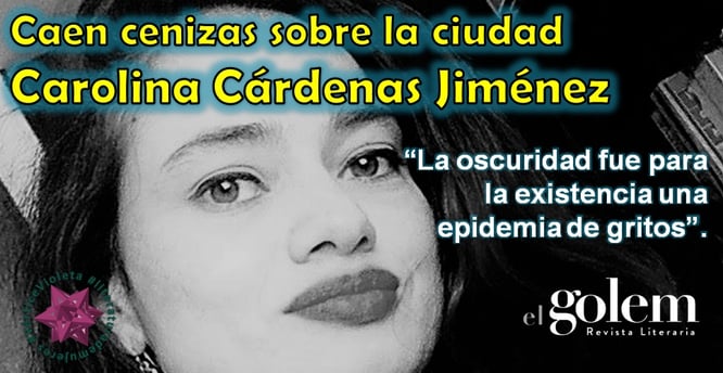 Carolina Cárdenas Jiménez: Narradora, poeta, columnista, docente y editora colombiana. Licenciada en Humanidades con énfasis en Lengua Castellana. Postgrado en Creación narrativa de la Universidad Central. Fundó la revista literaria Gavia de la Universidad Distrital (2005), la cual dirigió y editó. Becaria (Universidad Central) del Diplomado en Creación Literaria (2006). Becaria (IDARTES) del Taller de Novela Ciudad Bogotá (2015). Después de la nada (2023). Caen cenizas sobre la ciudad (2021). Finalista en el Concurso de poesía Nueve editores con la obra Después de la nada (2021). Premio Internacional de Poesía, Rostros para autores con un rostro. Accésit, con las obras Ninguna tierra me habita Y sin embargo soy (2018). Ganó el concurso de cuento Estímulos a la Creación Artística (2006) con el libro Parajes inesperados. Finalista en el Concurso Nacional de Cuento La Cueva con el texto Mañana será otro día (2012). Ganó el segundo puesto en el Concurso Nacional de cuento El Túnel (2011) con el texto A la deriva.