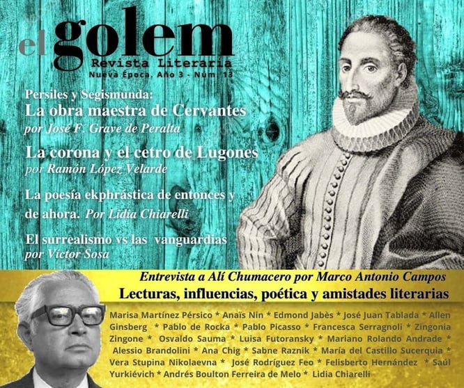 ENSAYO ● Persiles y Segismunda: La Obra Maestra de Cervantes. Por José F. Grave de Peralta ● La corona y el cetro de Lugones. Por Ramón López Velarde ● El Surrealismo contra las vanguardias. Por Víctor Sosa ● La poesía ekphrástica de entonces y de ahora. Por Lidia Chiarelli ●